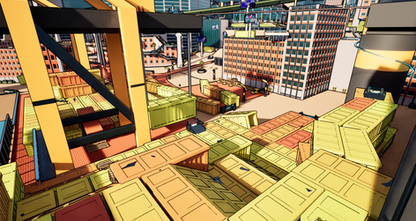 my main responsibility on ShredEx was to design and create the level. as a team, we ideated a cityscape with several distinct districts.
